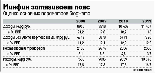 Министерство финансов пошло в борьбе за контроль над денежной массой традиционным путем и составило крайне консервативный бюджет на 2009–2011 гг. Вчера этот документ (копия его есть в распоряжении «Ведомостей») был рассмотрен рабочей группой по бюджету в правительстве.