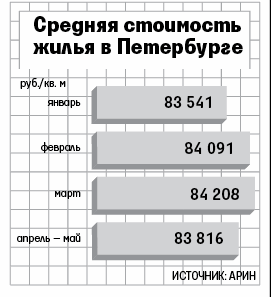 Первая половина апреля характеризовалась повышенной активностью и увеличением числа сделок, затем последовал период затишья, связанный с майскими праздниками, продлившийся до середины мая, говорит заместитель гендиректора агентства недвижимости АРИН Владимир Спарак. За апрель и май средняя стоимость жилья на первичном рынке Петербурга снизилась на 3% до 67 200 руб. за 1 кв. м, а на вторичном – на 0,5% до 80 900 руб. за 1 кв. м, подсчитал он.