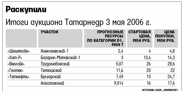 «Татарнедра больше не планируют проводить аукционы на разработку нефтяных участков в западной части РТ», – сообщил вчера «Ведомостям» чиновник Роснедр.