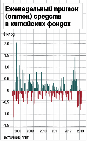Клиенты забирают деньги из глобальных паевых фондов, инвестирующих в китайский рынок. 16 из последних 18 недель такие фонды фиксируют отток средств. За 1–5 июня чистый отток составил $834 млн, и это самый большой показатель с января 2008 г., когда финансовый кризис уже был на ближних подступах (данные EPFR).