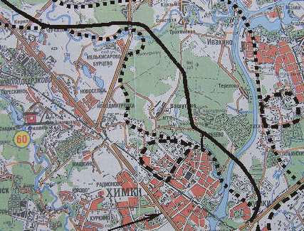 Генерализованный план трассы через Химкинский лес (трасса нанесена сплошной черной линией). Источник: Ecmo.ru