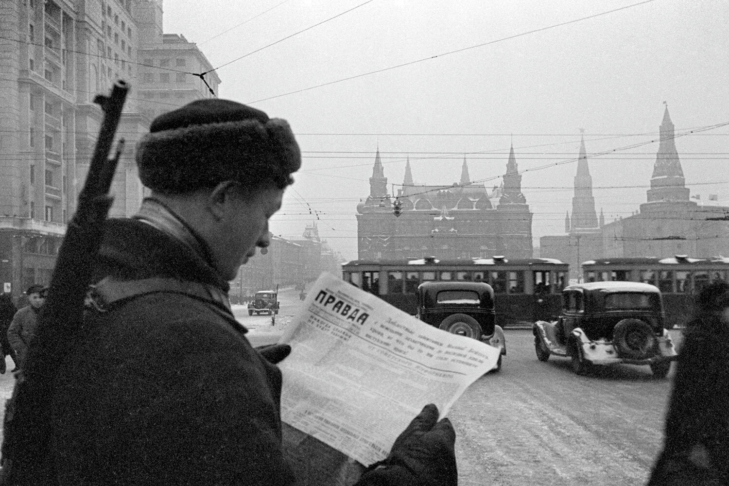 Анатолий Гаранин / РИА Новости, Андрей Гордеев / ВедомостиК весне 1943 г., когда советские войска освободили Ржев, угроза Москве была окончательно ликвидирована. В столицу стали возвращаться эвакуированные предприятия и вузы, на улицах возобновились массовые мероприятия, а метро перестало играть роль бомбоубежища.