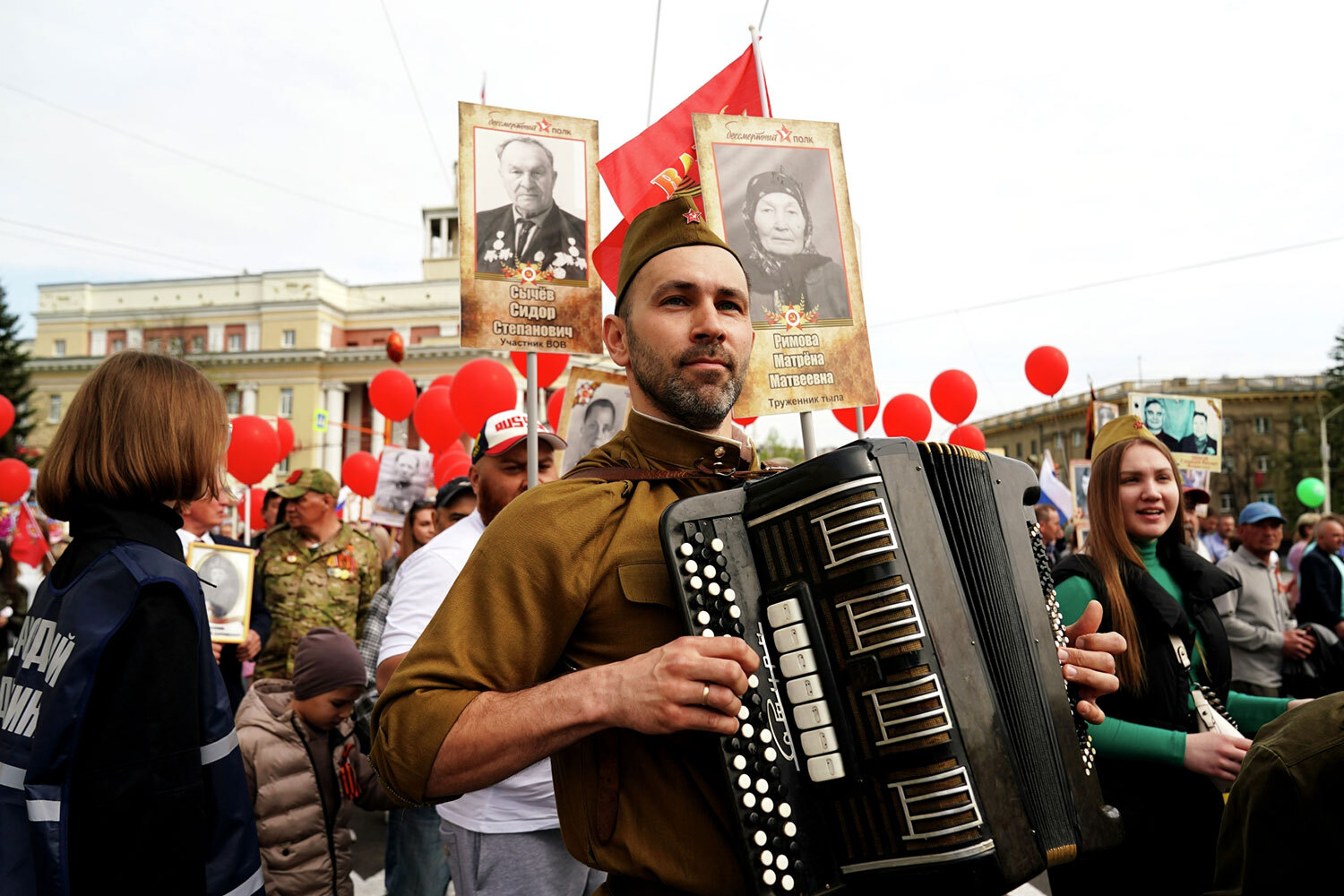 Участник акции «Бессмертный полк» во время празднования 80-летия Победы в Великой Отечественной войне в Кемерово.