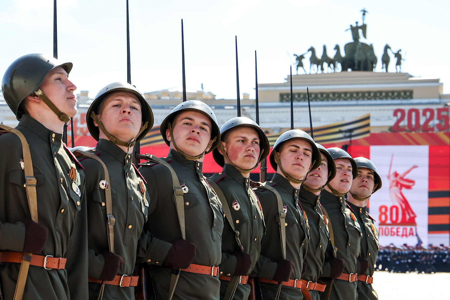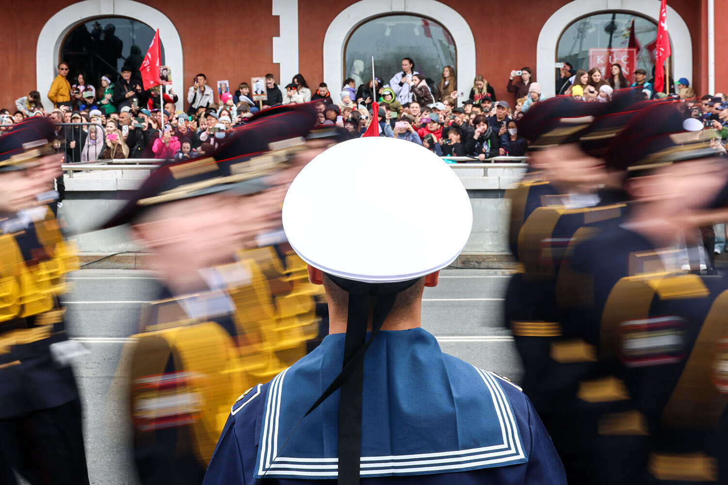 Владивосток. Военнослужащие парадных расчетов во время парада, посвященного 80-й годовщине Победы в Великой Отечественной войне.