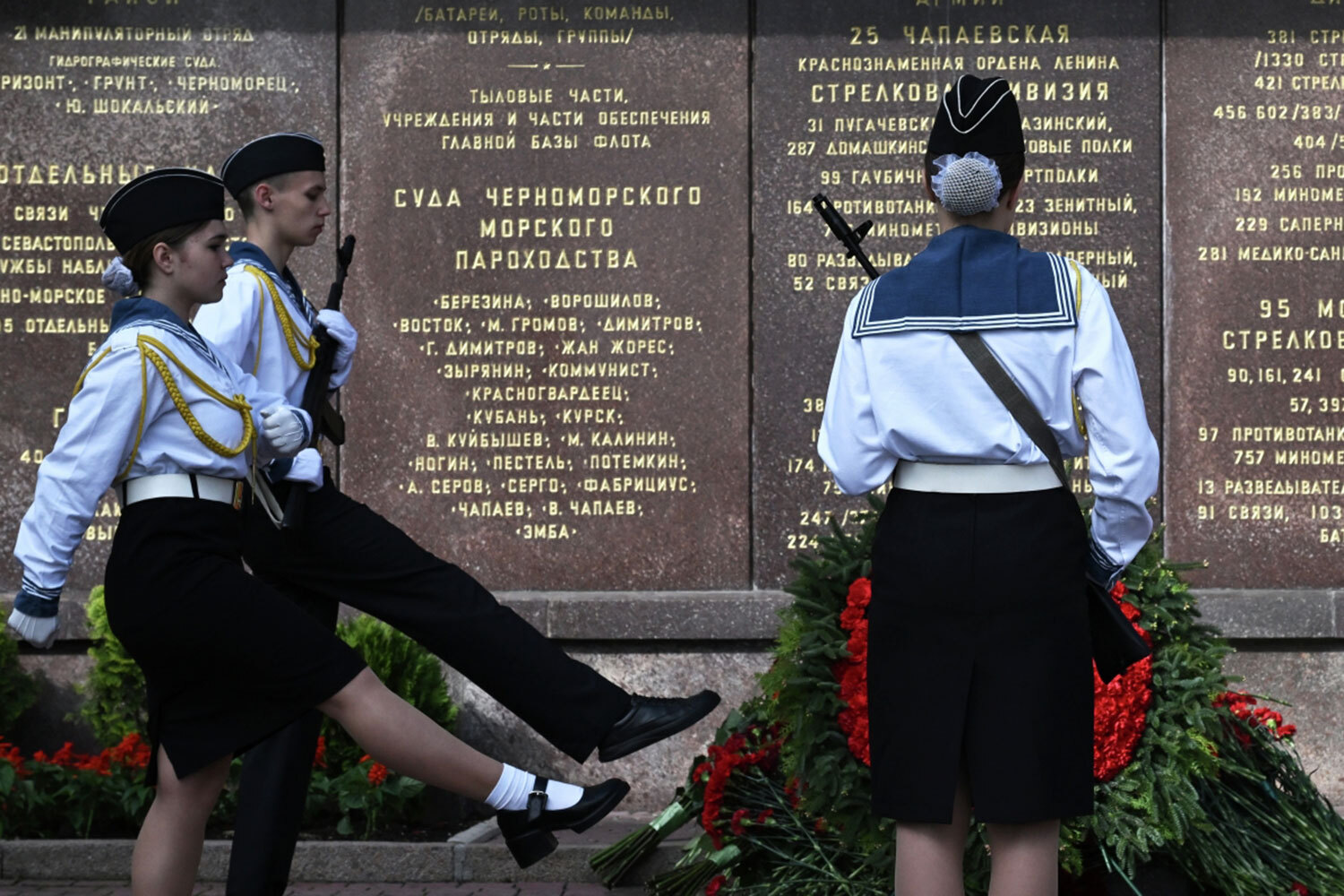 Севастополь. Церемония возложения цветов и венков к «Вечному огню» во время празднования 80-летия Победы в Великой Отечественной войне.