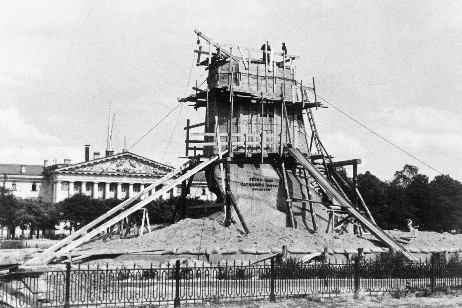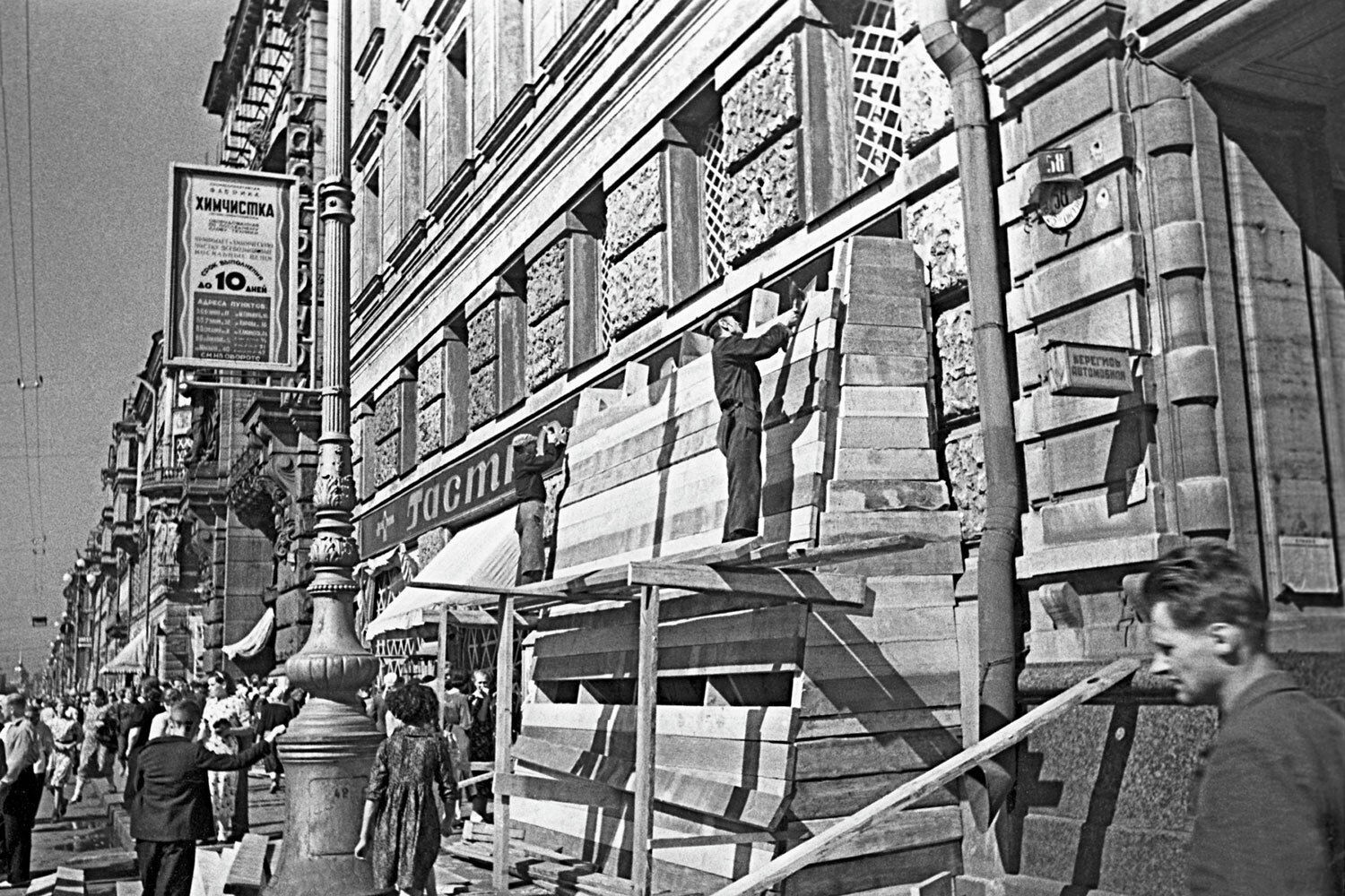 / Георгий Коновалов / ТАСC, Настасья Мартынова / для Ведомостей8 сентября люфтваффе совершили первый массированный авианалет на Ленинград, в результате которого были уничтожены Бадаевские склады. На крупнейшую продовольственную базу города, где хранилось 3000 т муки и 2500 т сахара, упало 280 зажигательных бомб. Впоследствии жители собирали землю, пропитанную расплавленным сахаром, и растворяли ее в воде.