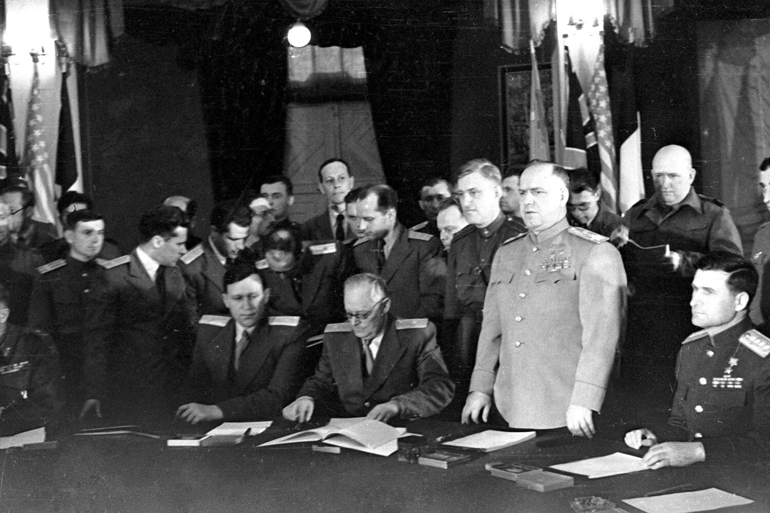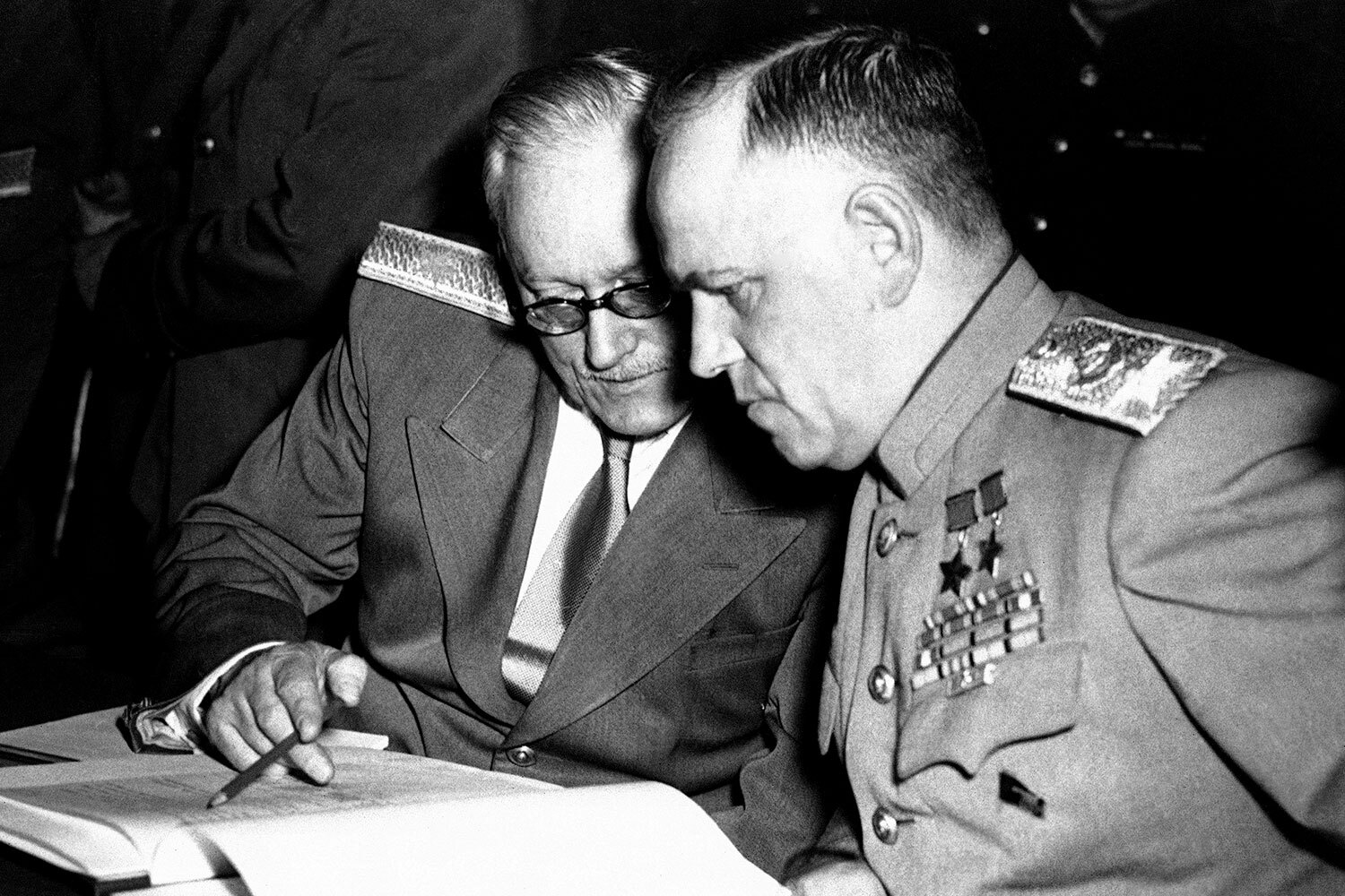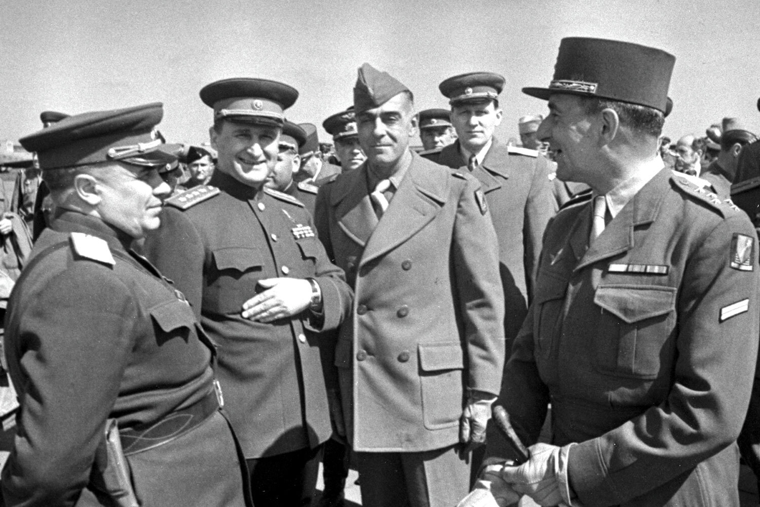 На фото: маршал Георгий Жуков (слева), фельдмаршал Бернардо Монтгомери (справа) и генерал Дуайт Эйзенхауэр