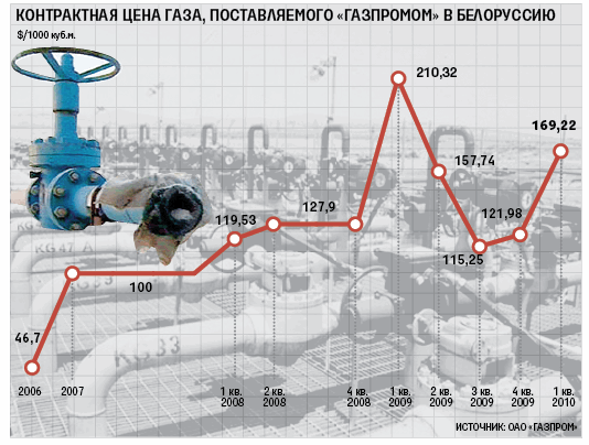 Нынешний конфликт с Минском начался в мае: «Белтрансгаз» накопил долг, платя за газ по средней цене 2009 г. ($150 за 1000 куб. м), контрактная цена выше, но соседи ссылались на устные договоренности президентов двух стран. Дмитрий Медведев такие договоренности не подтверждал и сам дал добро «Газпрому» на ограничение поставок вплоть до 85% – «в полном соответствии с контрактом». «Газпром» заявляет, что Белоруссия должна $192 млн; сегодня – если не будет оплаты – цифра вырастет до $250 млн (будут учтены майские поставки).