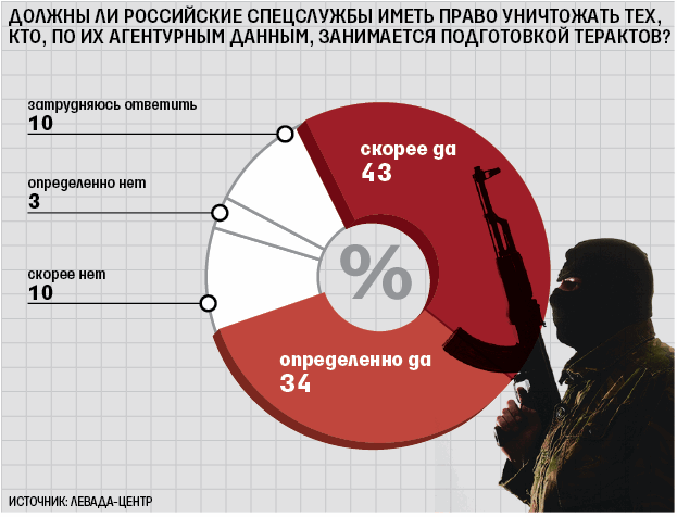 При этом по сравнению с апрелем 2010 г. больше граждан поверили в способность российских властей обуздать терроризм. В возможность контролировать ситуацию на Северном Кавказе сейчас верят 49% против 46 в апреле, а в способность обеспечить безопасность и предотвратить теракты верят 40% против 35 в апреле. С Кавказа идет небольшой информационный поток, поэтому появляется ощущение, что ситуация, может, и не спокойная, но контролируемая, объясняет Гудков.