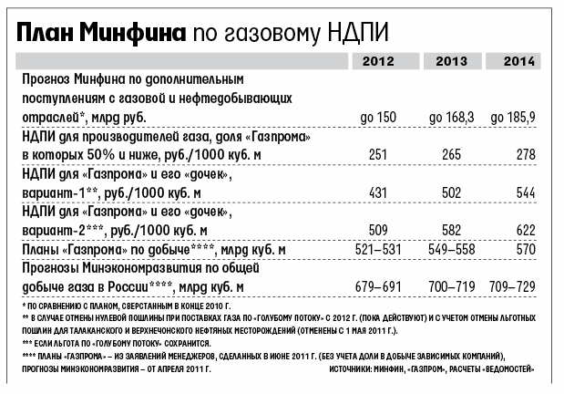 Как и предполагалось раньше, для «собственников» единой газотранспортной системы, т. е. для «Газпрома» и его «дочек», с 2012 г. должны действовать повышенные ставки НДПИ. Однако есть два альтернативных варианта, отмечает Минфин. Первый – рост налога до 509 руб. за 1000 куб. м (вместо нынешних 237 и 536 руб., которые Минфин предлагал для «Газпрома» в мае). Такая ставка нужна, если Россия не отменит беспошлинную поставку газа в Турцию по газопроводу «Голубой поток» (льгота действует по межправительственному соглашению с начала поставок в 2003 г.), говорится на сайте министерства. Второй вариант – установить НДПИ для «Газпрома» на уровне 431 руб., если льготы по «Голубому потоку» отменят.