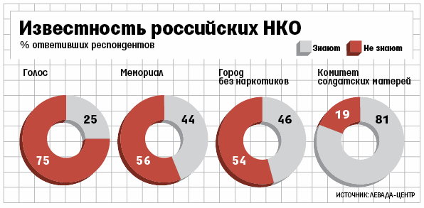 Исследование об отношении к НКО «Левада-центр» провел 19–22 апреля, задав 1601 гражданину вопросы, предложенные «Ведомостями». Спустя 10 месяцев после внесения Александром Сидякиным в Госдуму законопроекта об иностранных агентах большинство относятся к НКО даже жестче, чем законодатель, не вводивший прямого запрета на иностранную помощь. 66% опрошенных считают, что организации, занимающиеся защитой прав граждан и критикующие власть, вообще не должны иметь права получать средства из-за рубежа (обратного мнения – 20%), 53% одобряют жесткие санкции – вплоть до ликвидации – к тем, кто живет на иностранные гранты, но не регистрируется как агент (против – 19%).