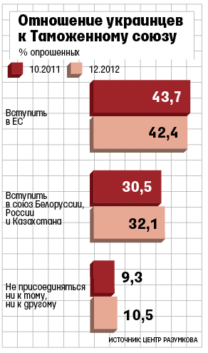 На Украине уже развернута кампания по разъяснению населению преимуществ вхождения в союз. В парламенте убедить граждан и власть пытается компартия. Ее лидер Петр Симоненко считает, что по вопросу вступления должен быть проведен референдум. Президентская Партия регионов разделяет курс власти на оба вектора, три оппозиционные партии – «Батькивщина», «Свобода» и «Удар» – агитируют за сближение с ЕС. Из общественных организаций на российском поле активны «Украинский выбор» Виктора Медведчука, ассоциация «Поставщики Таможенного союза» Олега Ногинского, украинский филиал Института стран СНГ, Центр системного анализа и прогнозирования, Российско-украинский информцентр, говорит эксперт Олег Бондаренко.