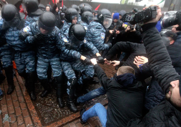 В Киеве начались стычки протестующих и милиции