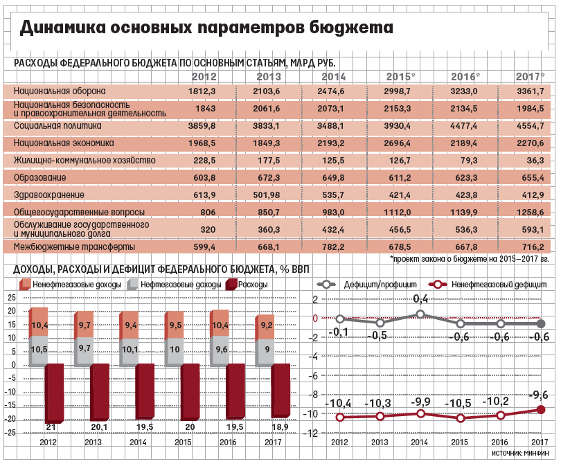 Минфин попытался сбалансировать бюджет, выдержав бюджетное правило «с запасом»: планируемый на трехлетку дефицит не превышает 0,6% ВВП. Ситуация опасна тем, что рассчитываемая по бюджетному правилу цена нефти уже фактически сравнялась с прогнозируемой ($96/барр. и $100/барр. на все три года соответственно) - люфт совсем небольшой, тогда как нефть с лета дешевеет и уже к концу года может быть заметно ниже $100, беспокоился высокопоставленный чиновник Минфина.