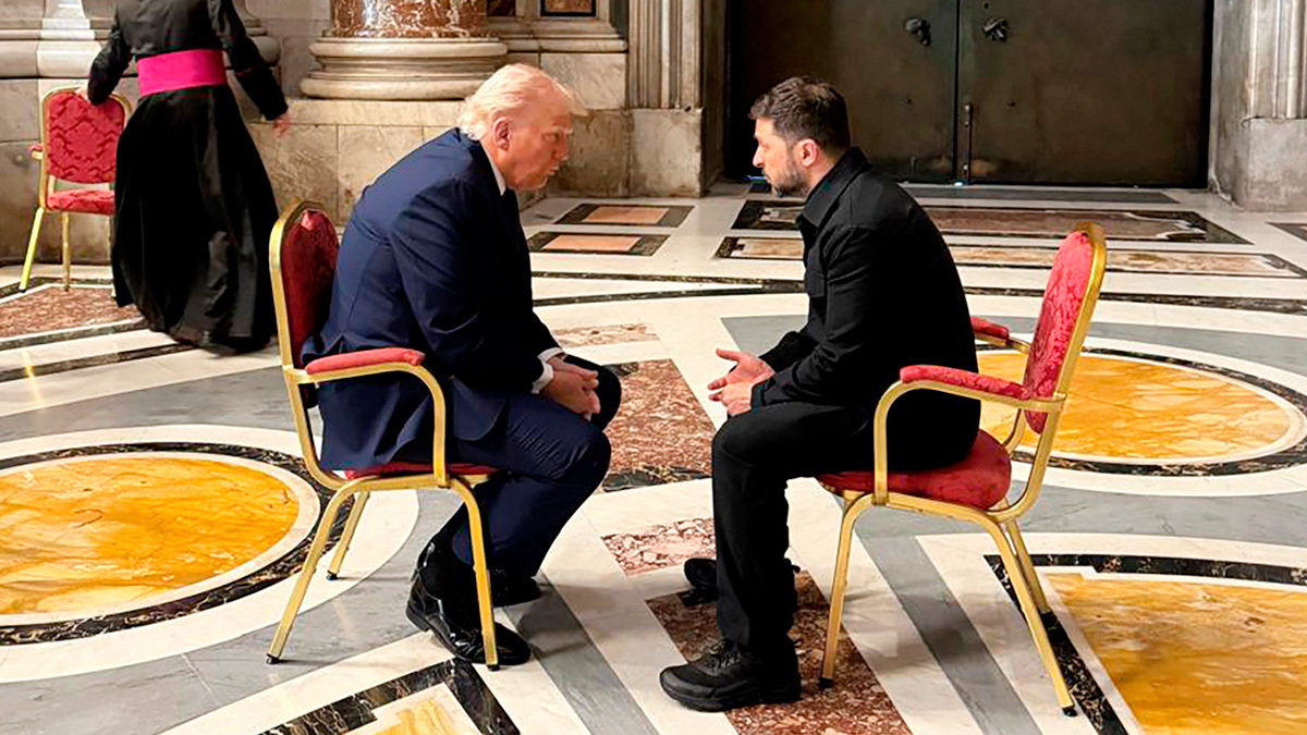 26 апреля. Трамп и Зеленский встретились в Риме перед похоронами папы римского Франциска. Встреча стала первой после перепалки в Белом доме 28 февраля. Украинский президент заявил, что встреча прошла хорошо и они с Трампом «успели обсудить многое». Трамп рассказал, что Зеленский вновь просил оружие у США. Генштаб ВС России в этот же день доложил Путину о завершении операции по освобождению Курской области от ВСУ. Трамп заявил, что основные моменты сделки по Украине согласованы.