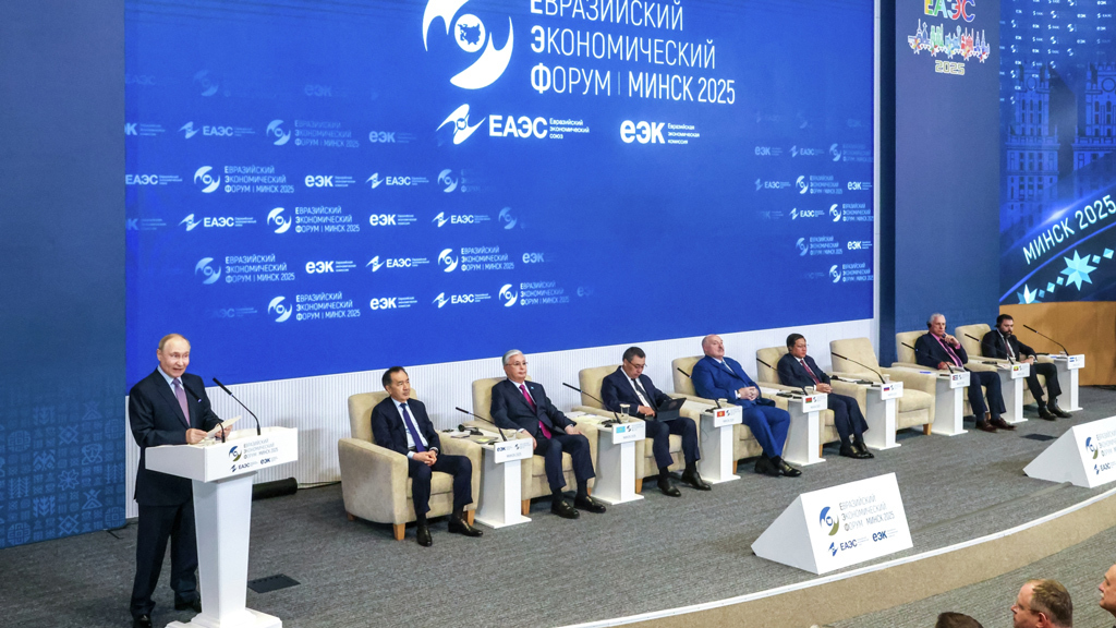 Президент России Владимир Путин выступил на пленарном заседании Евразийского экономического форума в Минске, посвященном перспективам евразийской интеграции.