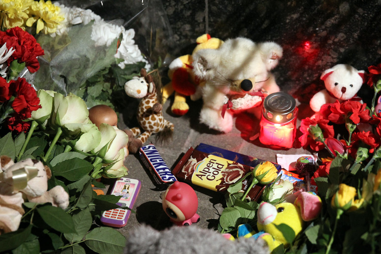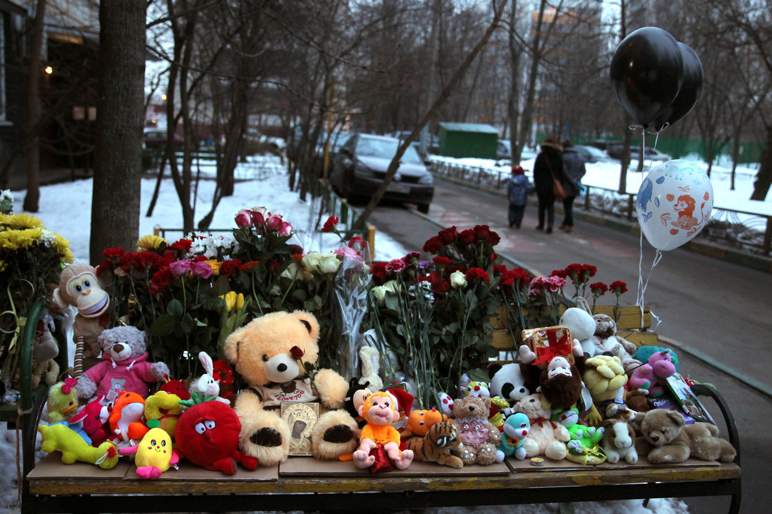 Москвичи и гости столицы несут цветы и игрушки к станции метро «Октябрьское поле» и к дому, где жил ребенок