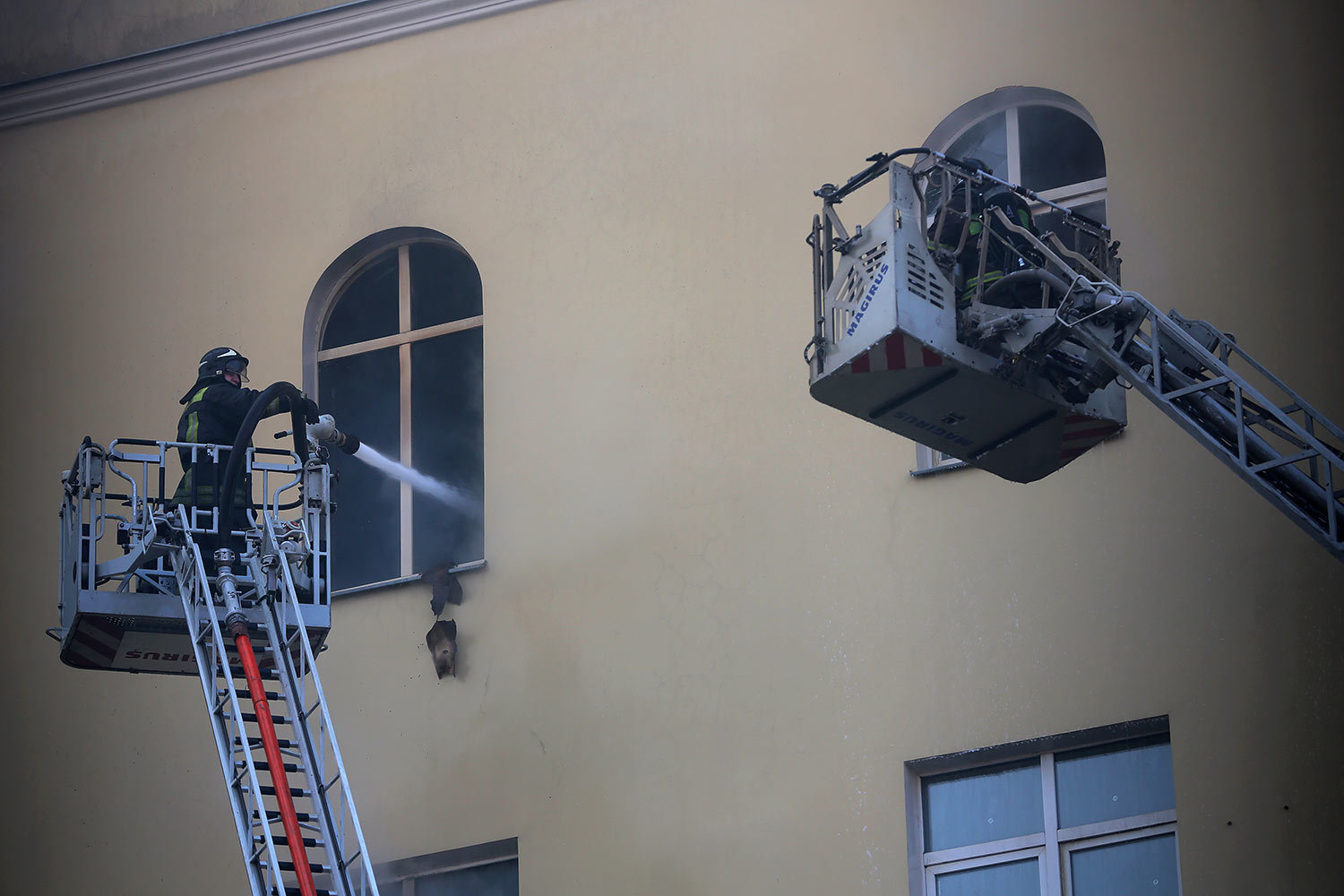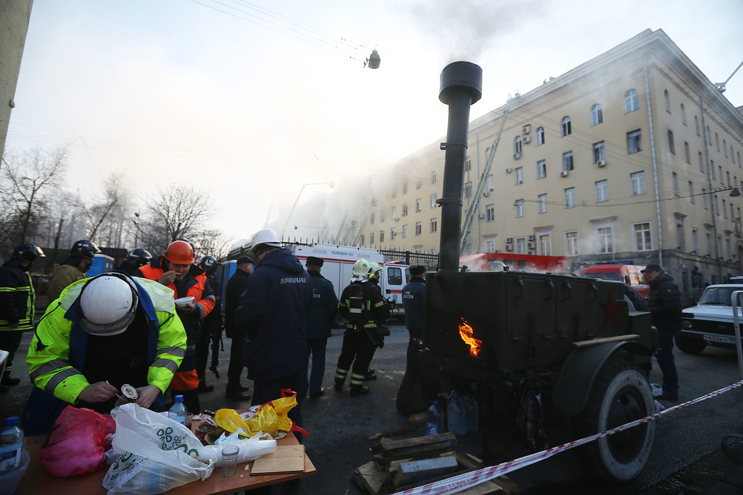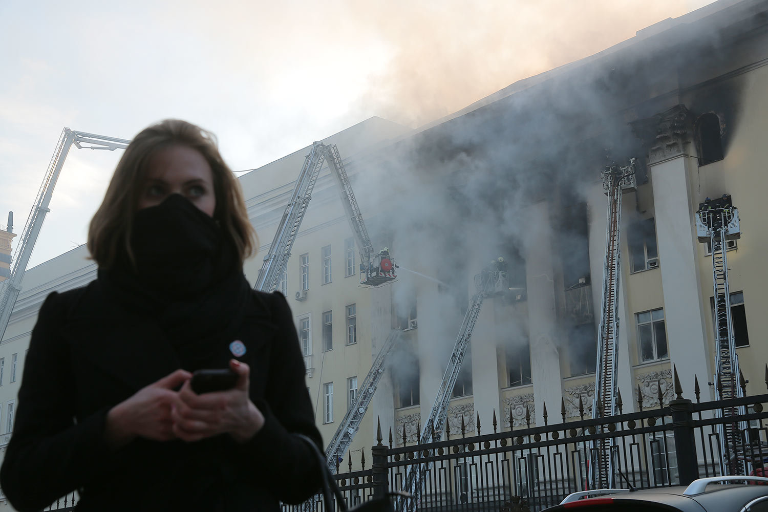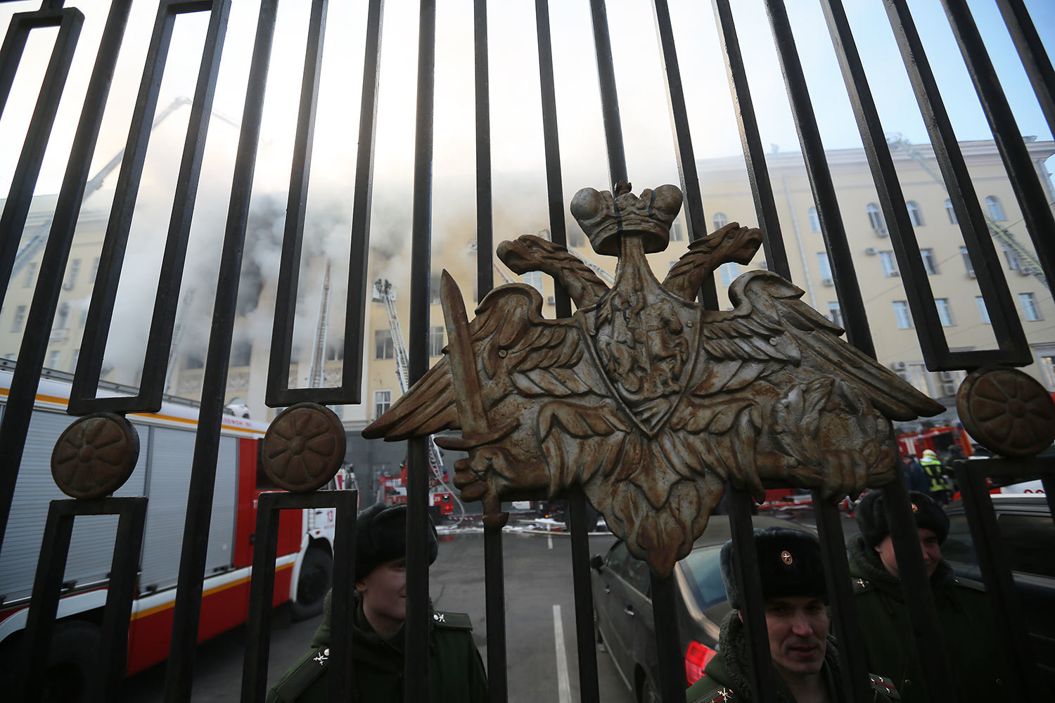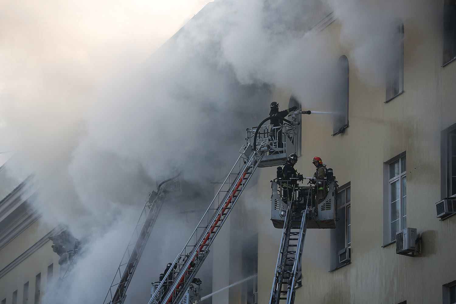 Евгений Разумный / ВедомостиИсточник «Интерфакса» в экстренных службах рассказал, что в здании обрушилась кровля на площади 1200 кв. м. Позднее в военном ведомстве пояснили, что это было сделано специально для облегчения проливки водой, ликвидации очагов возгорания и тления и проведения дополнительной разведки в здании