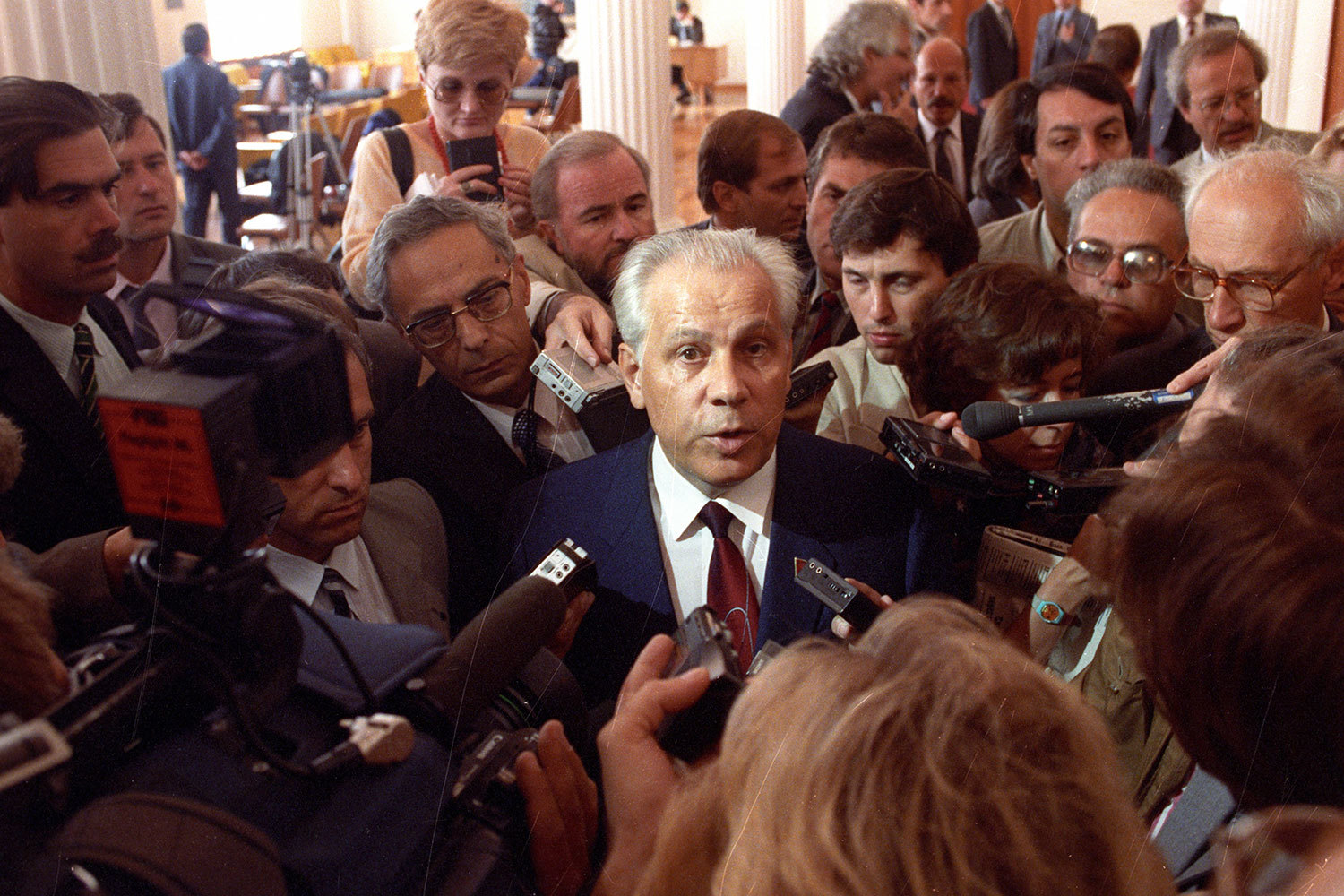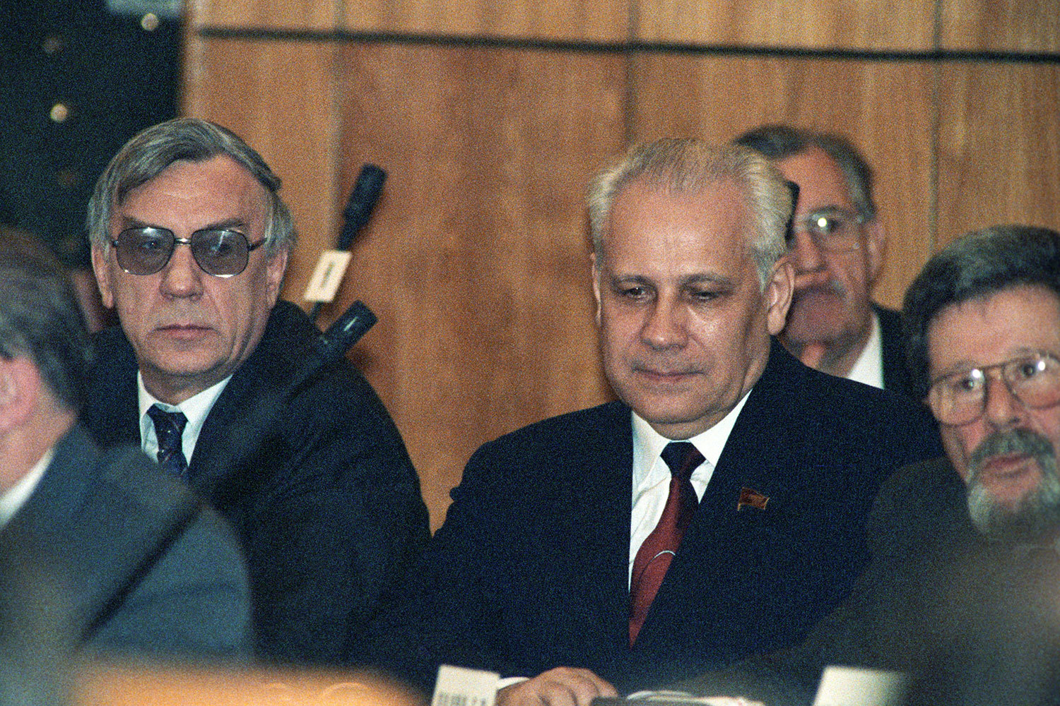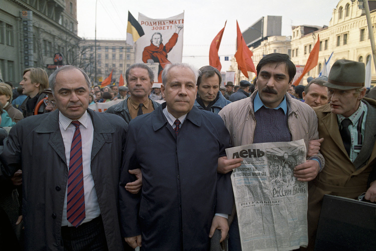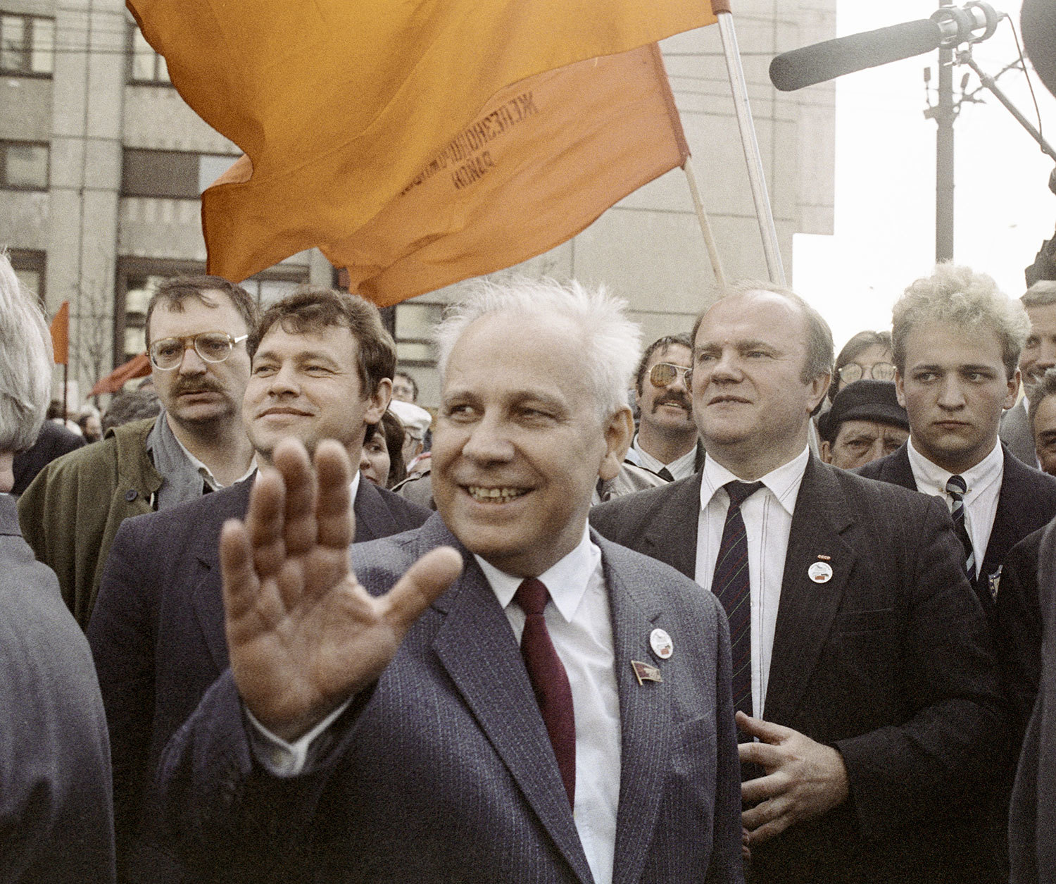 На фото Лукьянов на трибуне Мавзолея 7 ноября 1987 г. с будущим первым президентом России Борисом Ельциным и будущим первым президентом СССР Михаилом Горбачевым