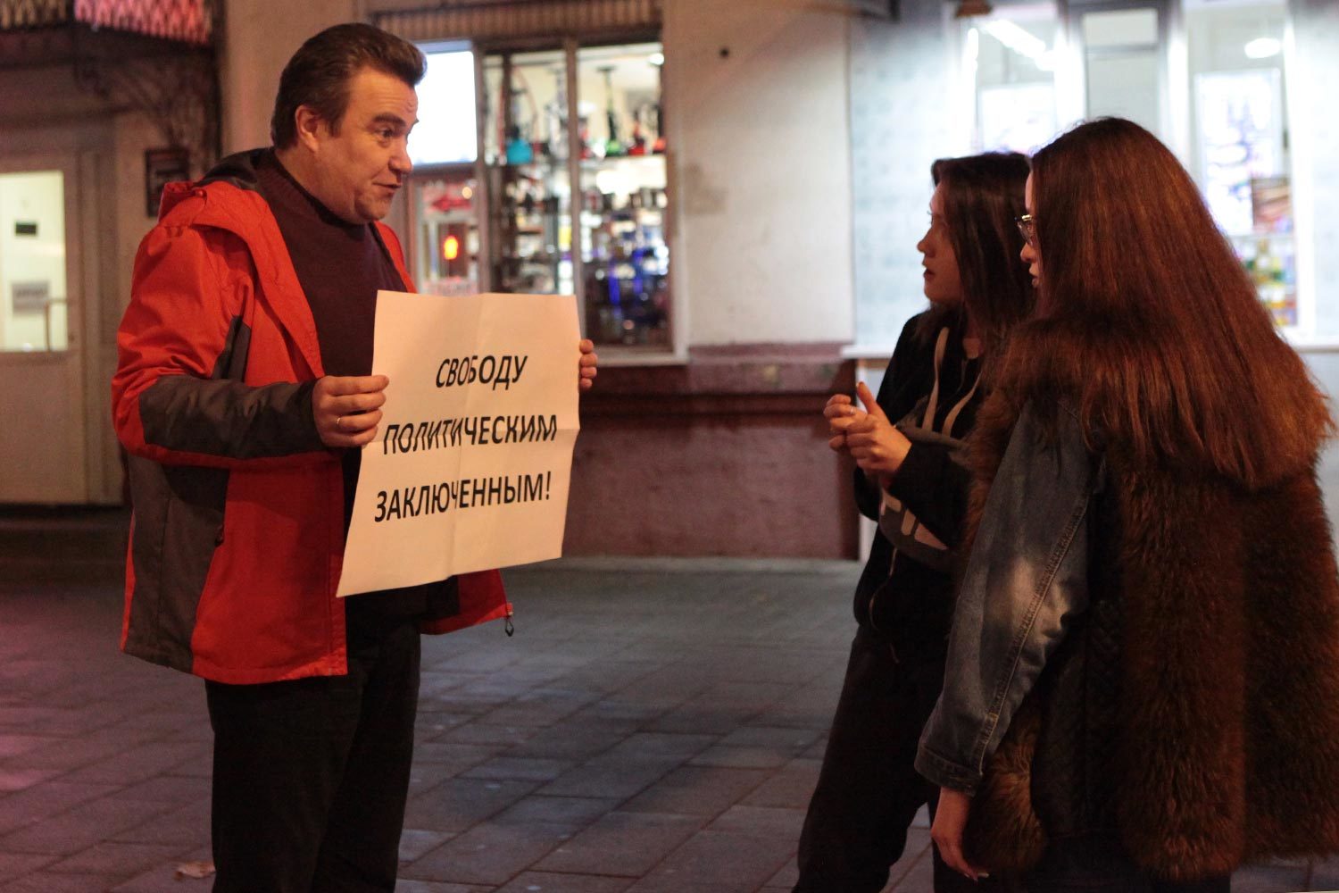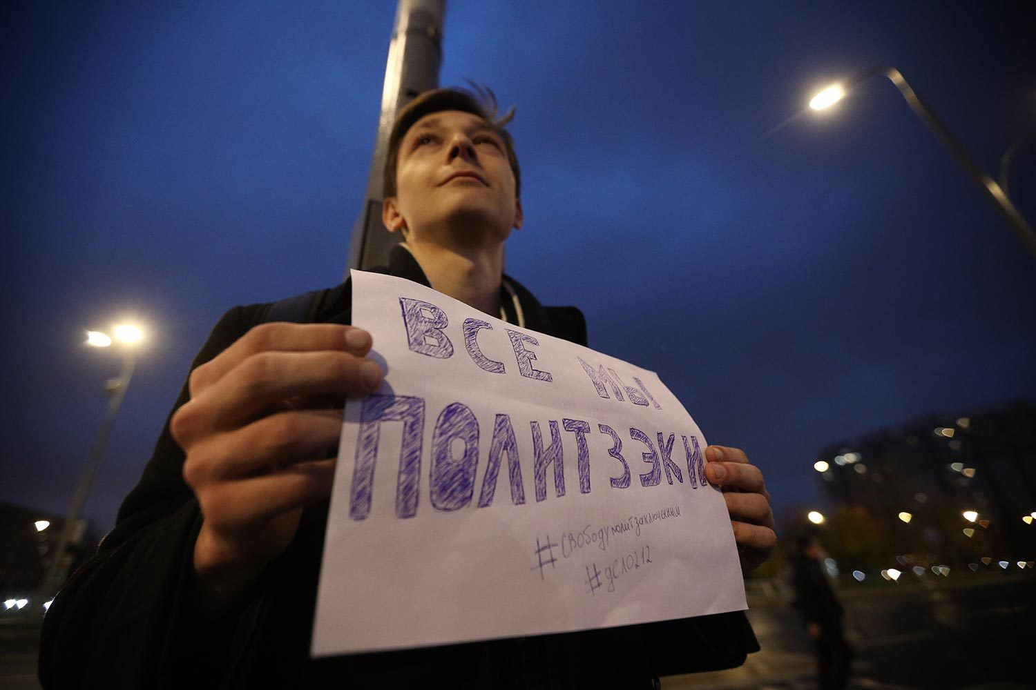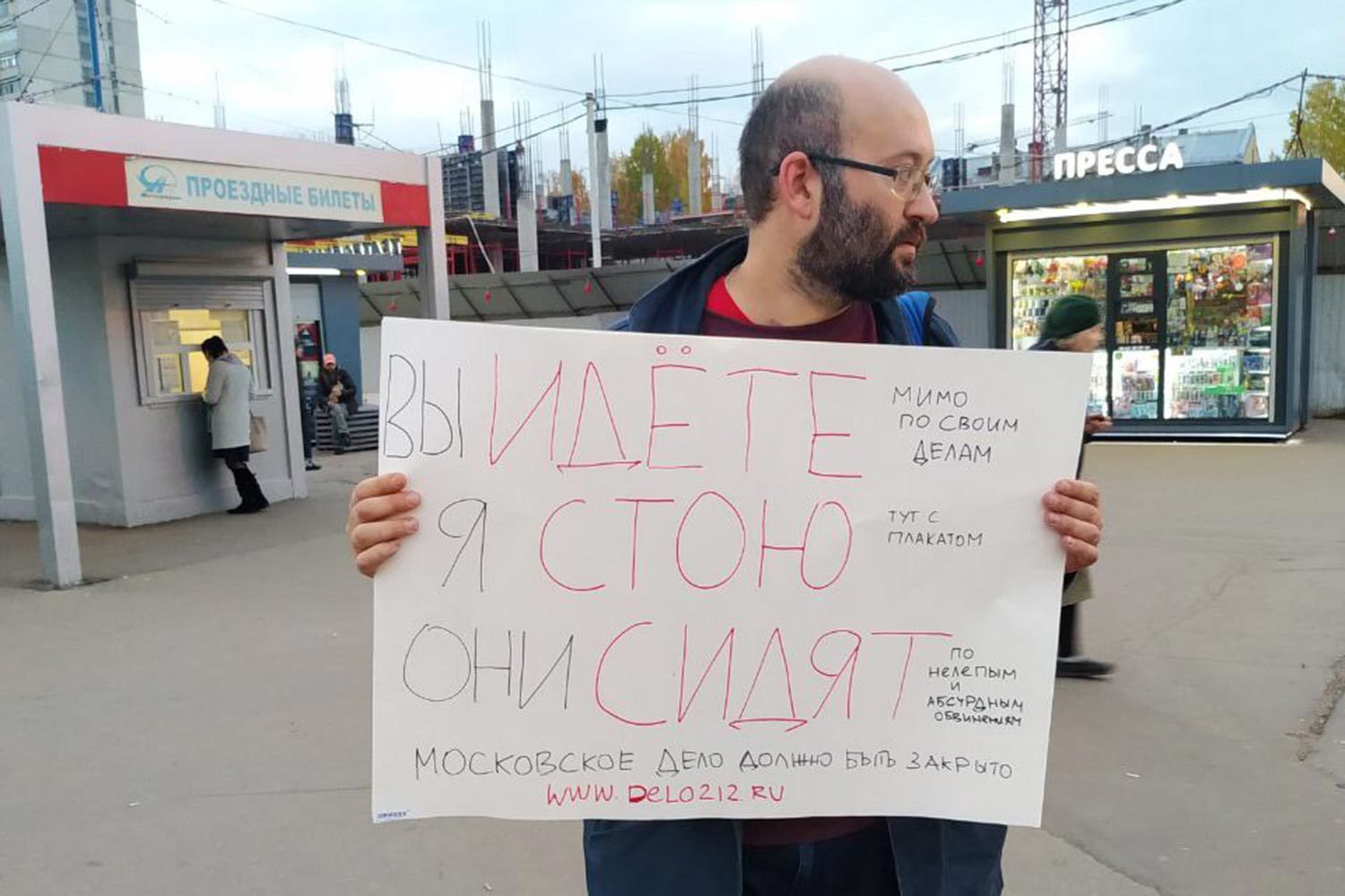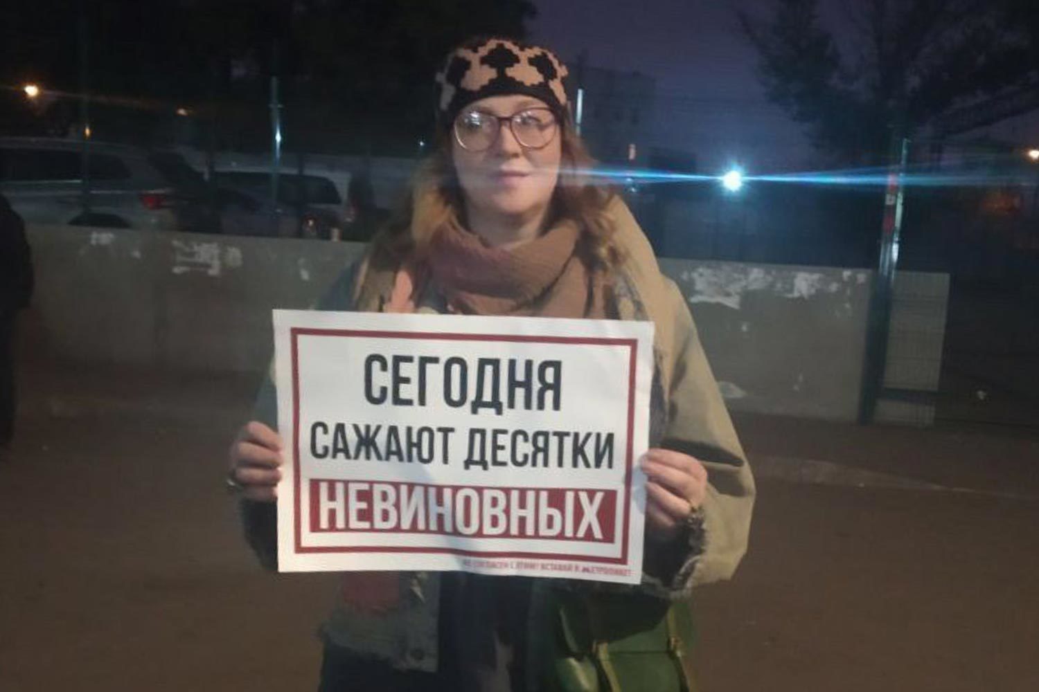 Наташа Шарапова для ВедомостейВ Москве прошли одиночные пикеты в поддержку фигурантов «московского дела», «Нового величия» и «Сети». Пикеты прошли по всей Москве, вдалеке от центра города, на нескольких станциях. В частности, у метро «Выхино», «Академическая», «Петровско-Разумовская» и «Тимирязевская». Всего 17 станций. На фото: актриса Яна Троянова у станции метро «Академическая»
