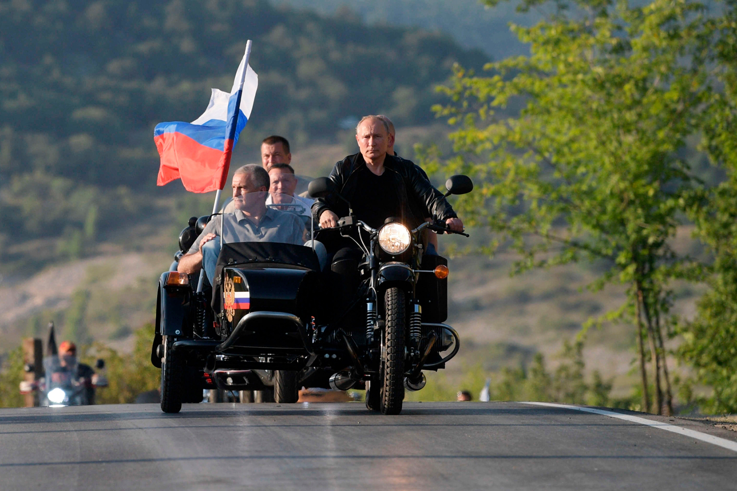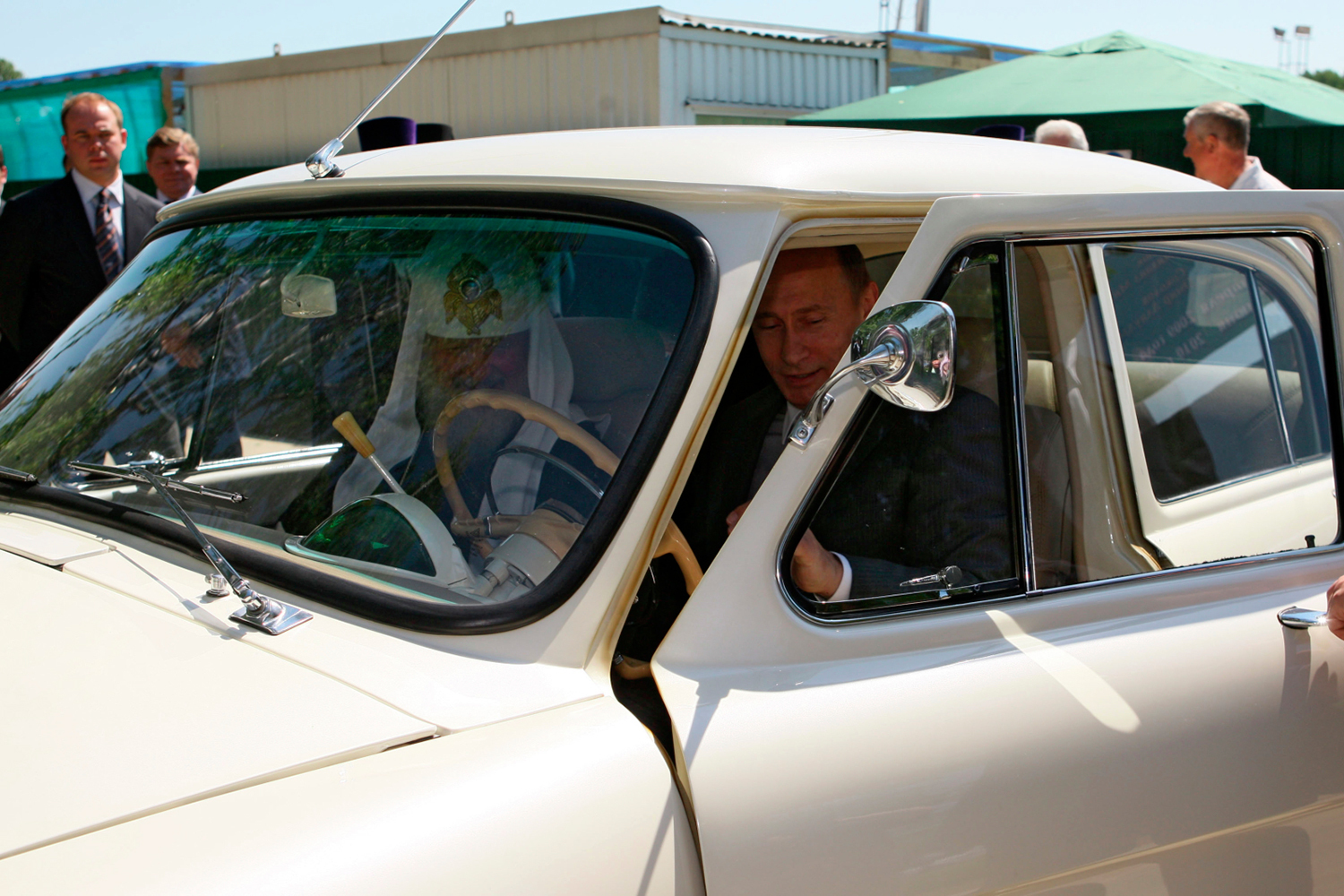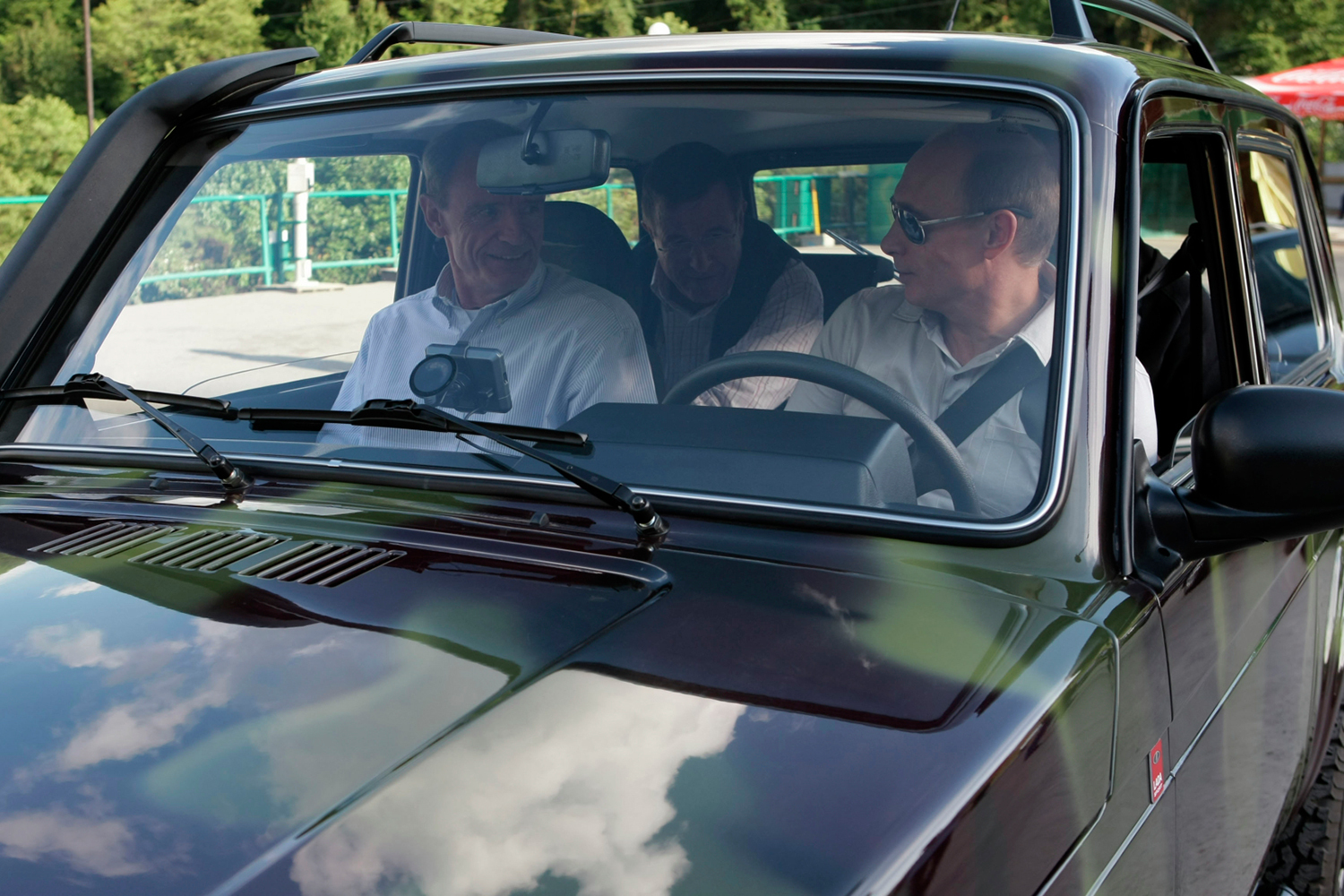 Алексей Дружинин / РИА НовостиСентябрь 2009 г. Премьер Владимир Путин, председатель Координационной комиссии МОК по подготовке XXII зимних Олимпийских игр в Сочи, член МОК Жан-Клод Килли (на первом плане справа налево) и исполнительный директор МОК Жильбер Фелли (в центре) в автомобиле «Нива», принадлежащем главе российского правительства, в Сочинском национальном парке.