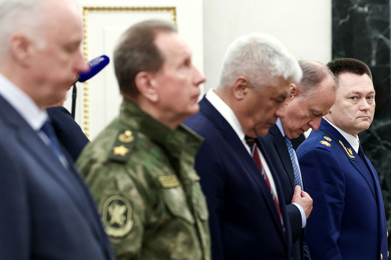 На фото слева направо: председатель СКР Александр Бастрыкин, глава Росгвардии Виктор Золотов, министр внутренних дел Владимир Колокольцев, помощник президента России Николай Патрушев и генпрокурор Игорь Краснов.