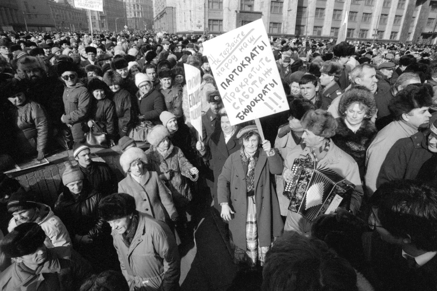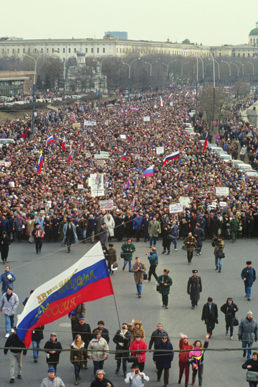 Дмитрий Соколов / Фотохроника ТАССПоводом для демонстрации стал Всесоюзный референдум о сохранении СССР, назначенный на 17 марта. Официально вопрос, поставленный перед гражданами, звучал так: «Считаете ли вы необходимым сохранение СССР как обновленной федерации равноправных суверенных республик, в которой будут в полной мере гарантироваться права и свободы человека любой национальности?». В РСФСР параллельно голосовали за введение поста президента республики, который вскоре занял Борис Ельцин.