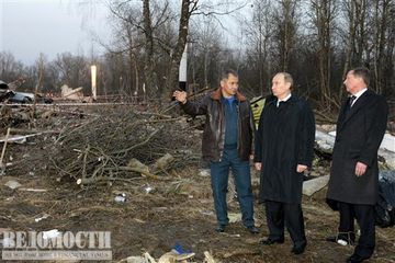 Глава МЧС России Сергей Шойгу, премьер-министр Владимир Путин, первый вице-премьер Сергей Иванов, на месте авиакатастрофы под Смоленском