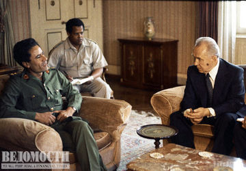 Муаммар Каддафи встречается с экс-министром иностранных дел РФ Игорем Ивановым. Ливия, шатер Каддафи, 2001 г.