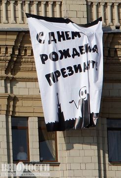 2005 г. Театрализованный пикет под названием "Мы отметим эту дату максимально ярко!", приуроченный ко дню рождения Владимира Путина, прошел в Новопушкинском сквере.