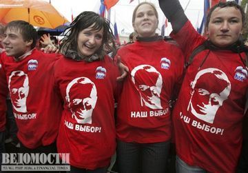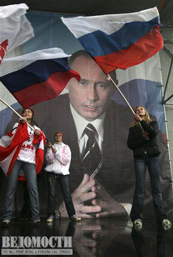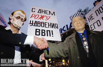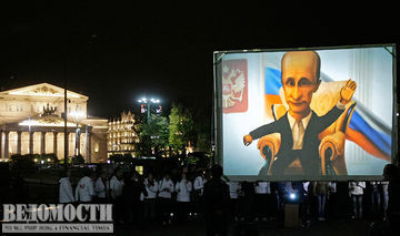 2007 г. Члены движения "Наши" поздравили Владимира Путина с 55-летием.