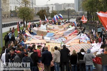 2007 г. Активисты движения "Наши" провели в Москве несколько массовых акций в честь дня рождения президента Владимира Путина, которому исполнилось 55 лет. В ходе одной из них они растянули на набережной Тараса Шевченко, где собралось около десяти тысяч человек, большое "одеяло мира", сшитое из сотен одеял и тканей с национальными орнаментами различных народов.