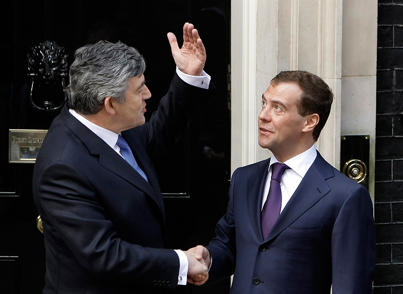 Премьер-министр Великобритании Гордон Браун и президент России Дмитрий Медведев на саммите G20, 2009 г.