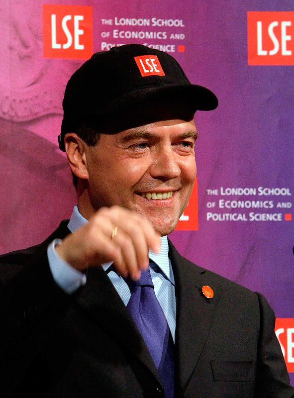 Президент России Дмитрий Медведев во время выступления в Лондонской школе экономики, 2009 г.