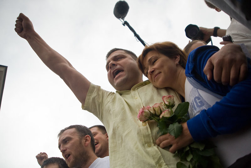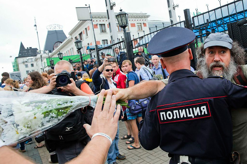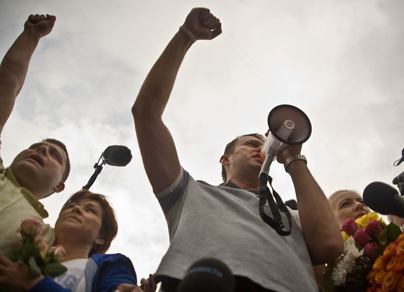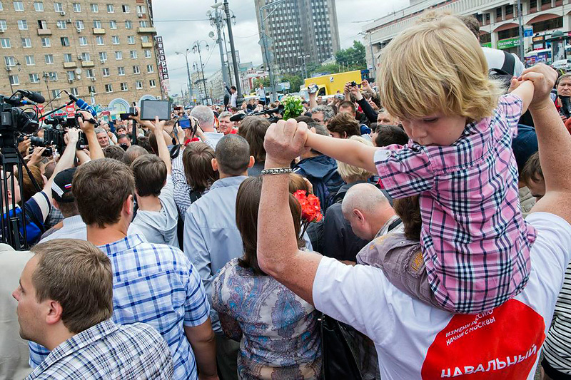 Более тысячи человек пришли утром в субботу на Ярославский вокзал Москвы, чтобы встретить освобожденного под подписку о невыезде кандидата в мэры Москвы Алексея Навального и Петра Офицерова Читайте статью "Кто стоит за освобождением Навального"
