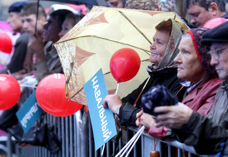 Кандидат в мэры Москвы Алексей Навальный с писателем Григорием Чхартишвили (Борисом Акуниным).