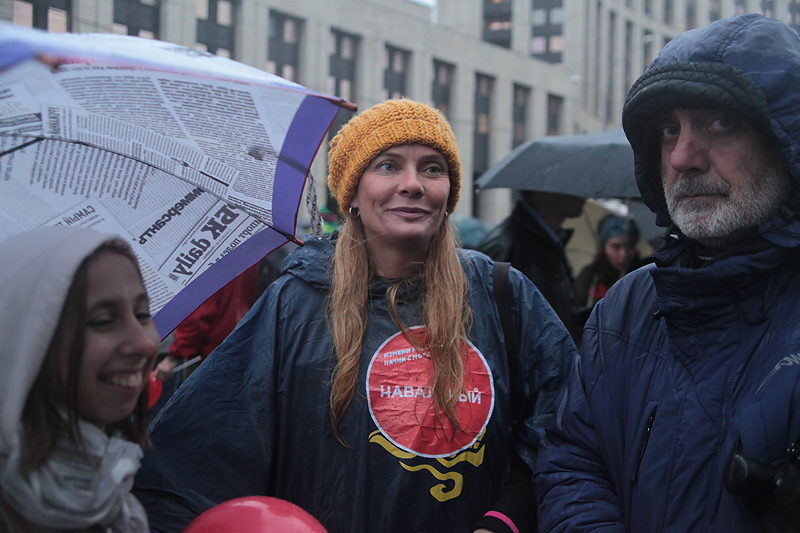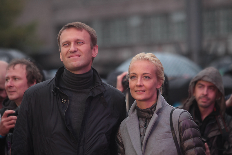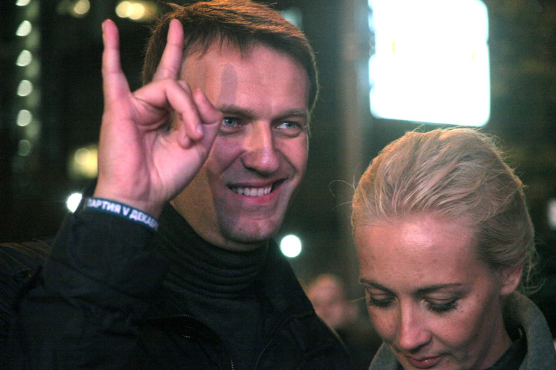 Алексей Навальный с женой Юлией и начальником его предвыборного штаба Леонидом Волковым (слева)