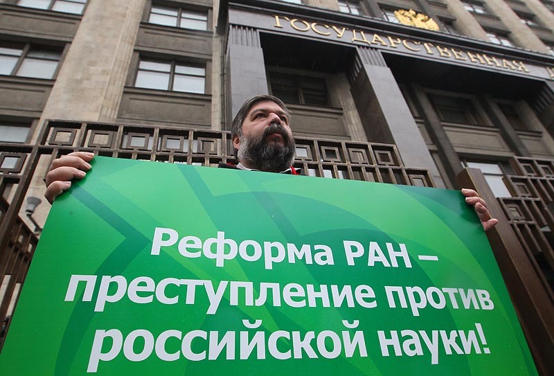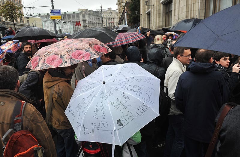 17 сентября ученые под непрекращающимся дождем устроили несанкционированную акцию протеста против реформы РАН. "Гулянья ученых" приурочили к голосованию о возвращении законопроекта о реформе во второе чтение. Несмотря на протесты, голосование состоялось. Второе чтение, скорее всего, состоится 18 сентября. Депутаты отказались даже позвать представителей научной общественности на пленарное заседание. ГУ МВД оценило численность акции в 150 человек, с учетом блогеров и журналистов.