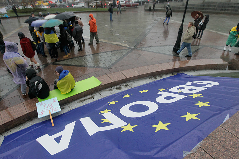 Сторонники евроинтеграции во время акции "За европейскую Украину" на Майдане Независимости с требованием возобновить переговоры об ассоциации Украины с Евросоюзом