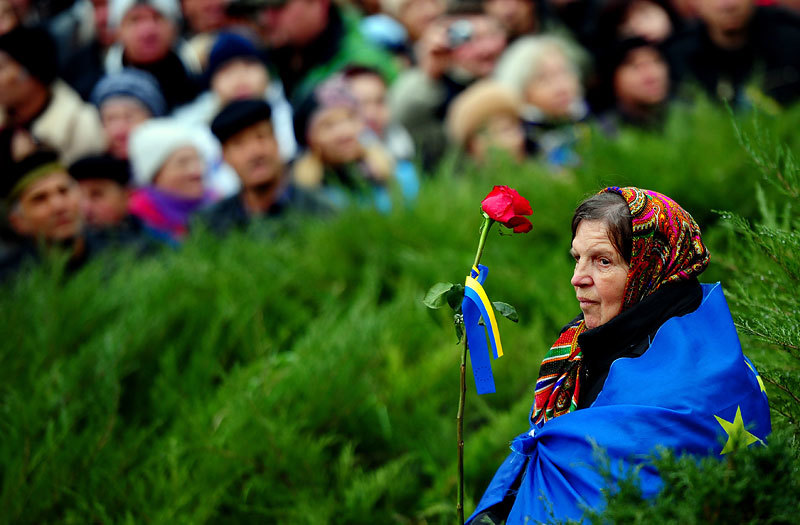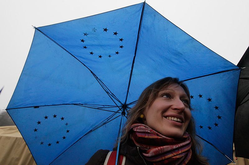 Участница акции "За европейскую Украину" на Майдане Независимости с требованием возобновить переговоры об ассоциации Украины с Евросоюзом