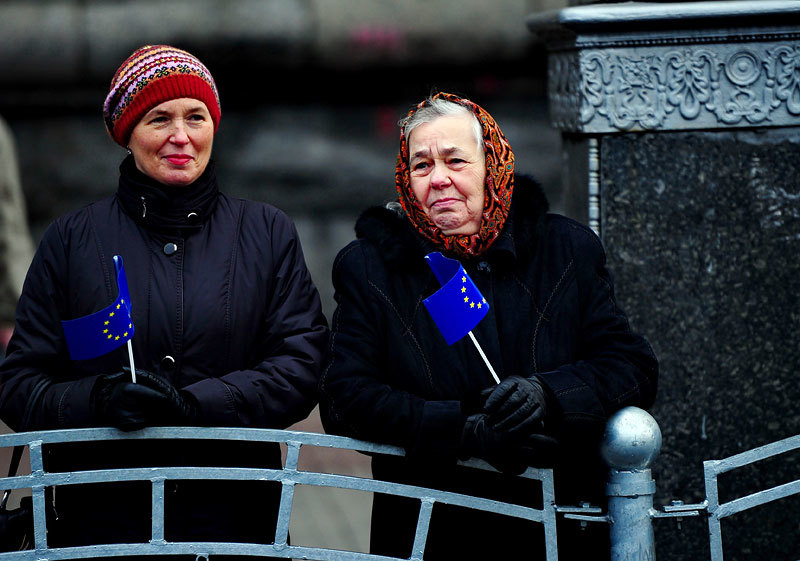 Пенсионерки во время акции "За европейскую Украину" на Майдане Независимости с требованием возобновить переговоры об ассоциации Украины с Евросоюзом