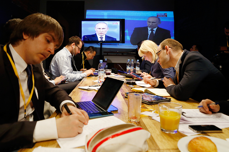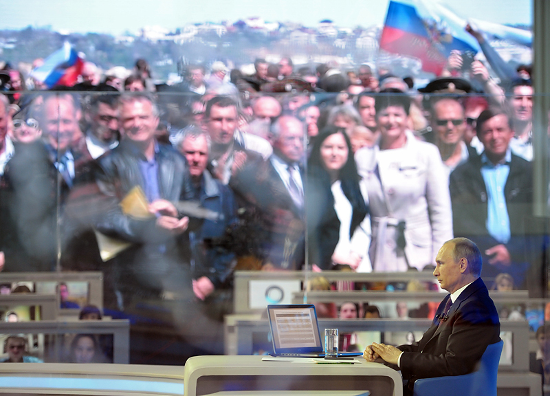 Президент Владимир Путин назвал «очередным очень серьезным преступлением» решение нынешних властей Украины двинуть «на гражданское население танки и авиацию». В ходе «прямой линии» 17 апреля он заявил, что выход из кризиса на Украине следует решать путем подлинного, а не показного диалога с регионами, в котором должны участвовать региональные народны лидеры, которых следует выпустить из-под стражи. К нынешним акциям протеста на юго-востоке Украины, по его словам, Россия никакого отношения не имеет.