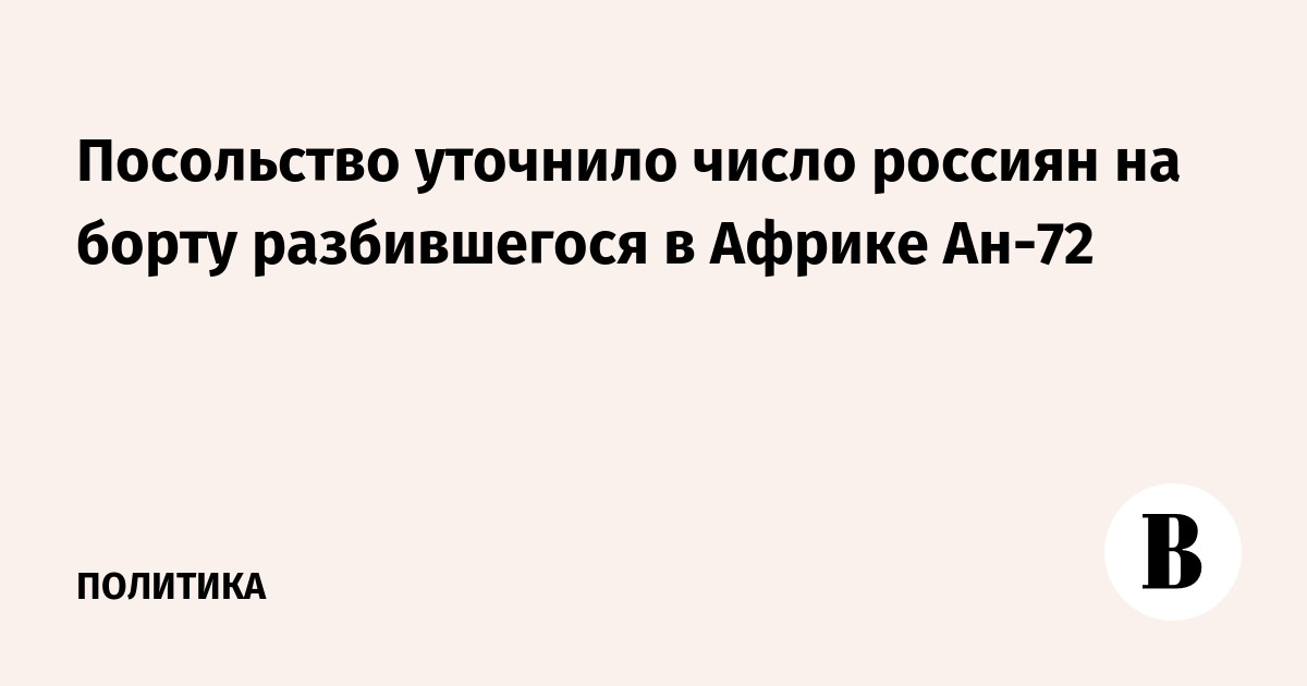 Посольство уточнило число россиян на борту разбившегося в Африке Ан-72