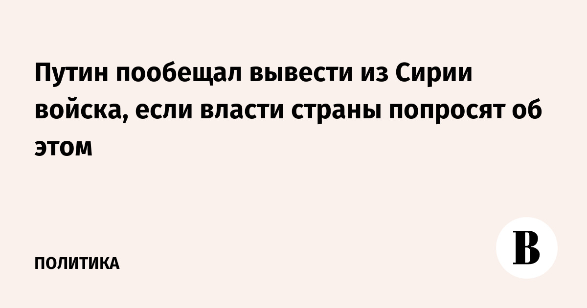 Путин пообещал вывести из Сирии войска, если власти страны попросят об этом