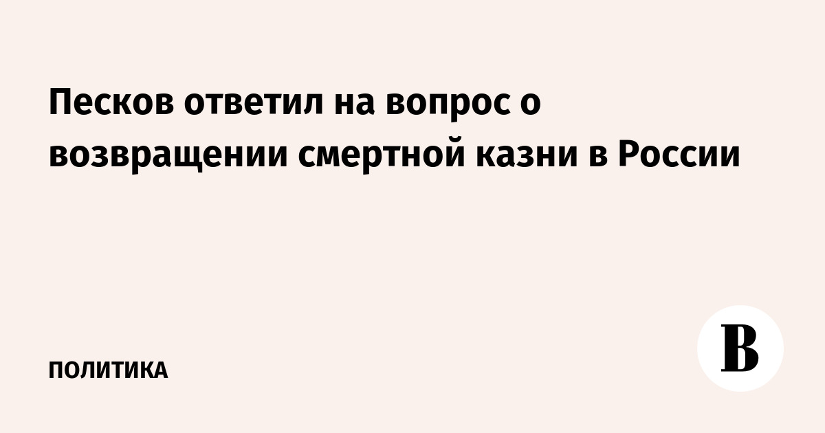 Российские власти не обсуждают возвращение смертной казни, заявил пресс-секретарь президента Дмитрий Песков. «В настоящее время этот вопрос никак не обсуждается», – сказал он «РИА Новости».