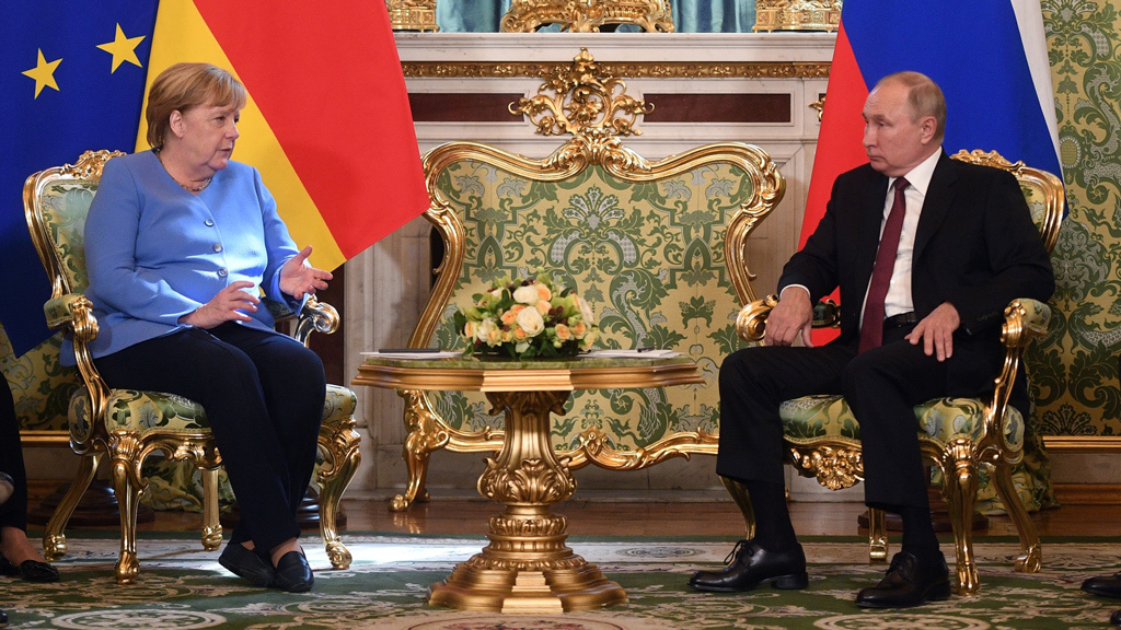 Путин попросил Меркель повлиять на Киев для урегулирования ситуации в Донбассе
