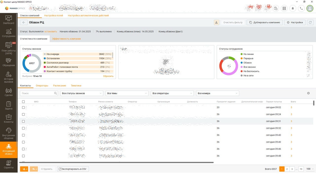 Аналитические инструменты (Контакт-центр и Модуль Wallboard) позволяют отслеживать KPI и эффективность работы ресечеров.