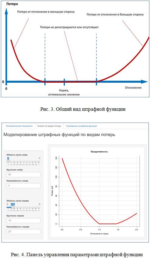Для моделирования семейства штрафных функций преподавателями кафедры были привлечены толковые студенты, которые, в рамках временных трудовых студенческих коллективов (ВТСК), используя язык программирования R, создали ряд приложений, позволяющих специалисту по кормлению моделировать потери, связанные с несбалансированностью кормления, см. рис. 4.