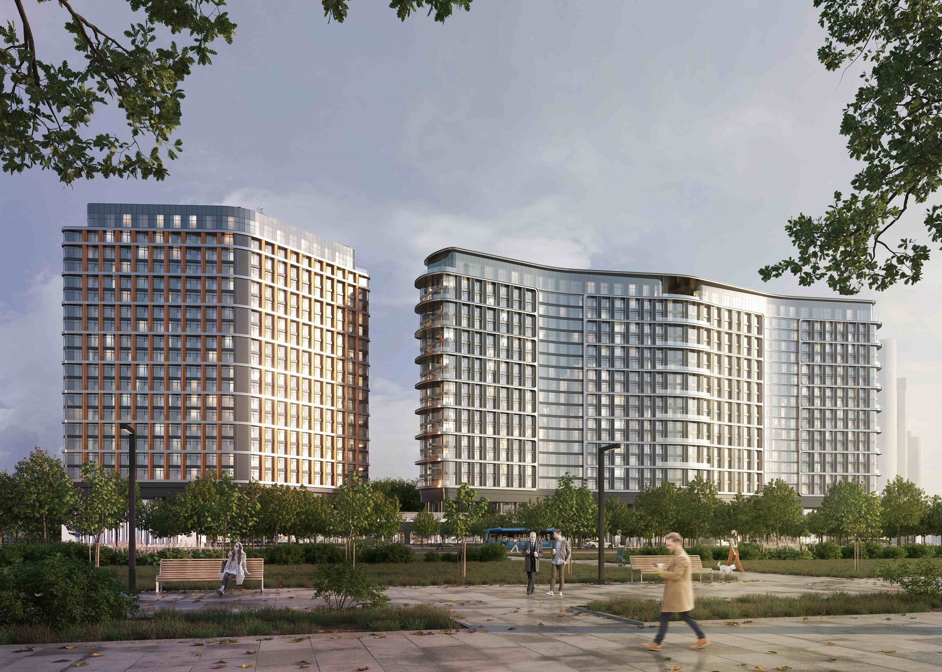 Дома восьмого квартала выполнены в футуристичном стиле, обладают плавными линиями бионических фасадов и крупноформатным остеклением.