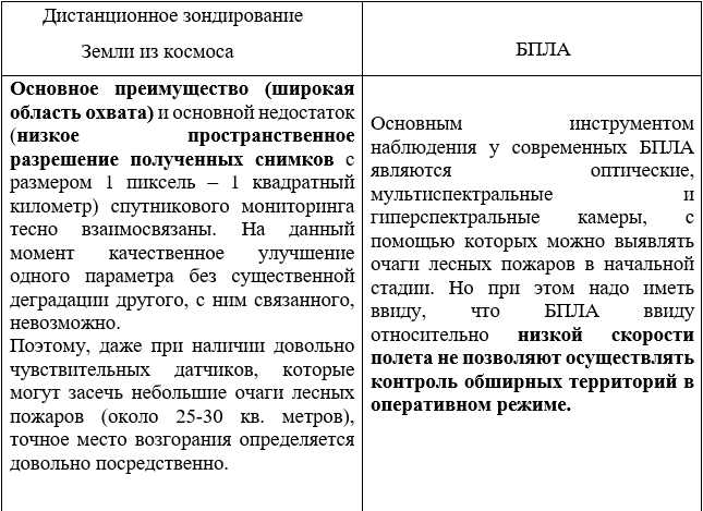 Сравнительные возможности систем дистанционного зондирования Земли из космоса и БПЛА представлены ниже.